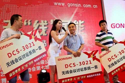 為回饋長(zhǎng)期支持GONSIN公信的廣大客戶,本次活動(dòng)特別設(shè)置了新品抽獎(jiǎng)環(huán)節(jié),獎(jiǎng)品為最新發(fā)布的DCS-3021無(wú)線會(huì)議系統(tǒng)一套。這份豐厚的禮品,讓在場(chǎng)客戶都心動(dòng)不已,中獎(jiǎng)客戶更是驚喜萬(wàn)分。
