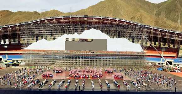 本屆運動會是西藏歷史上規(guī)模最大、設項最全、參賽人數(shù)最多的綜合性運動會。而全區(qū)民族傳統(tǒng)運動會作為繼2002年后時隔16年再次恢復舉辦的賽事更是備受矚目。本屆運動會共有1200多名運動員參加21個大項、92個小項的激烈角逐和1個表演項目的精彩展示。對于如此高規(guī)格的賽事,其開幕式自然也是氣勢恢宏、盛況空前。