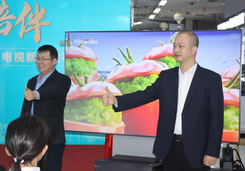 10月26日,一場“海信集團50周年慶激光電視及社交電視發(fā)布會”正在鄭州蘇寧寶龍店如火如荼的進行,海信集團中國區(qū)鄭州營銷中心電視總經(jīng)理黃艷峰與蘇寧易購鄭州大區(qū)家電公司總經(jīng)理李超坤、河南主流媒體共同出席了本次活動,共同見證了客廳電視的變革。感受智能大屏給消費者帶來了一個全新的家庭KTV體驗。