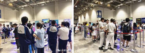 ▲同學們紛紛來到幻影星空展位,體驗先進有趣的VR設備!