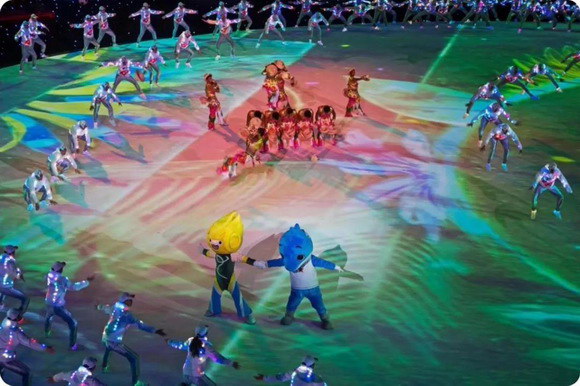 閉幕式的文藝表演晚會,歐瑪LED電腦切割燈(Ares-P7)和LED染色燈(Eos-B19)以其高亮度、低能耗華麗綻放于場館中心位置。追光燈(GATLING1500)更是身經(jīng)百戰(zhàn),以高穩(wěn)定性聞名,一直以來深得客戶信賴。此次歐瑪燈光大力增色這場充滿活力的聯(lián)歡,讓現(xiàn)場的視覺效果依然磅礴大氣,依然最炫聲光電。