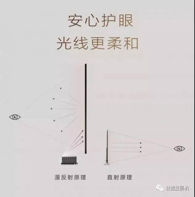 從根本上說,液晶電視和激光電視的發(fā)光原理不一樣。液晶電視是液晶板上的光直射入眼睛,而激光電視的光線先投射到屏幕上,再反射進(jìn)入人眼,相對(duì)柔和。