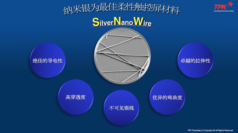 宸鴻科技成立于2003年,是觸摸屏行業(yè)的領(lǐng)軍企業(yè)。為適應(yīng)市場出現(xiàn)的“柔性”、“曲面”、“超大尺寸”等產(chǎn)品需求,宸鴻科技多年前就與Cambrios天材創(chuàng)新材料積極開發(fā)納米銀感應(yīng)材料并實(shí)驗(yàn)其應(yīng)用領(lǐng)域。經(jīng)過多次反復(fù)實(shí)驗(yàn)證明,納米銀材料具有透光度高,霧度低,電阻值低,耐彎折等優(yōu)良特性,是滿足新世代柔、曲、大、觸控感應(yīng)材料的不二選擇。