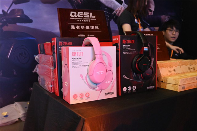 大賽選手們陸續(xù)領取得勝所提供的專業(yè)電競耳機 自由玩家 隱SHADE。