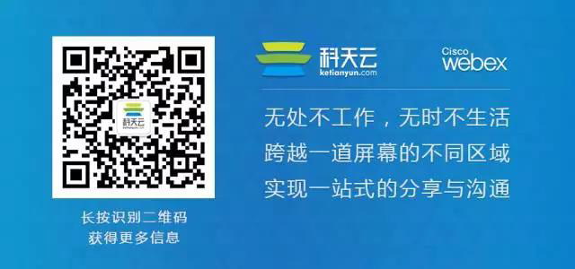 2014年12月12日,科天云由世界500強(qiáng)企業(yè)思科和智能制造領(lǐng)軍企業(yè)TCL共同合作成立。 Cisco Webex Meetings現(xiàn)由科天云在中國區(qū)獨(dú)家運(yùn)營。 科天云協(xié)作平臺擁有AI智能引擎,能夠集成協(xié)作軟硬件、智能應(yīng)用、大數(shù)據(jù)挖掘等提供整體解決方案。 幫助企業(yè)打造優(yōu)質(zhì)體驗(yàn)的智能會議、智能辦公、智能客服等行業(yè)應(yīng)用場景。