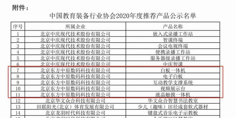 在2020年度推薦產(chǎn)品中,全國共有1060個產(chǎn)品申報評選,層層篩選后最終只有247家企業(yè)獲得推薦,東方中原憑借其優(yōu)秀品質(zhì),從一千多個產(chǎn)品中突圍,光榮入選中國教育裝備行業(yè)協(xié)會2020年度推薦產(chǎn)品。