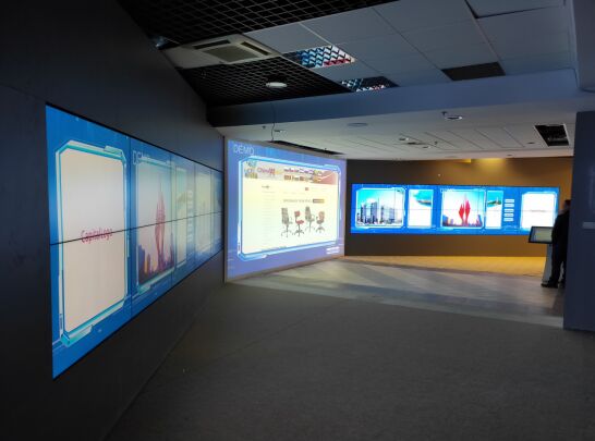 展示中心的大屏幕顯示系統(tǒng),共采用了銳麗4套55寸液晶拼接大屏幕顯示系統(tǒng)、4臺43寸觸摸一體機(jī)。安裝了大屏幕后的展示中心瞬間提升了N個格調(diào),帶著濃濃的現(xiàn)代化氣息。