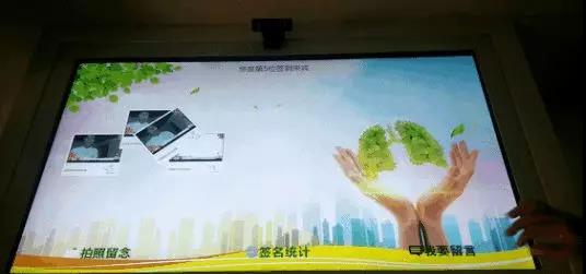 既可以拍照,又可以在照片上寫上參觀者的名字,并顯示在大屏幕上留念。