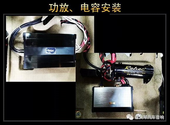 雷貝琴RA120四路功放、雷貝琴D800低音功放、雷貝琴電容安裝在座椅下