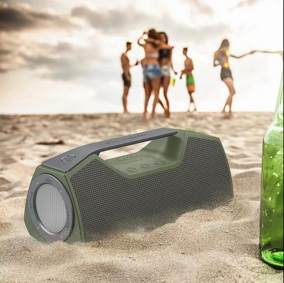 EXSON B2201按官方的說明,是定位于戶外運(yùn)動(dòng)和休閑的2.0CH藍(lán)牙音箱,難怪產(chǎn)品外包裝用了這種明顯帶有戶外屬性的暗綠色。
