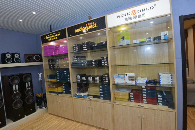 好馬配好鞍,發(fā)燒音箱沒有好的線材怎么行?后面的架子上,美國(guó)天仙配、美國(guó)線圣、美國(guó)線世界等世界著名線材品牌,從喇叭線、信號(hào)線到電源線,都十分齊全。店員也十分熱情,幫助來(lái)這里發(fā)燒友介紹器材的搭配,忙的不可開交。