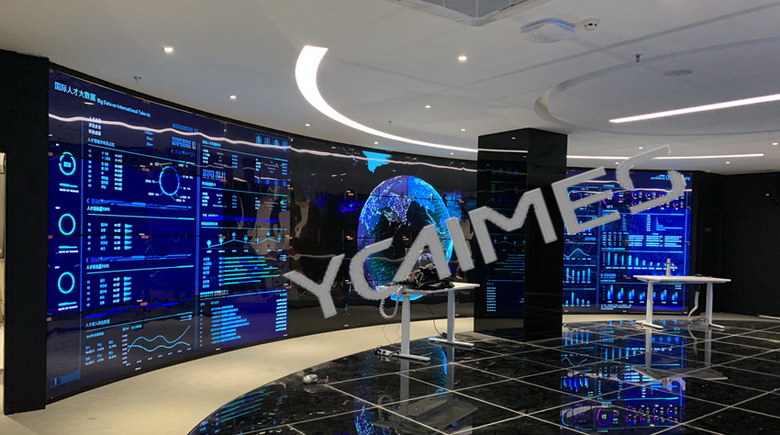 揚程電子55寸OLED自發(fā)光體拼接屏4X10助力武漢某國際人才中心企業(yè)展廳,展示了OLED柔性的面,超薄設計,超高對比度效果。