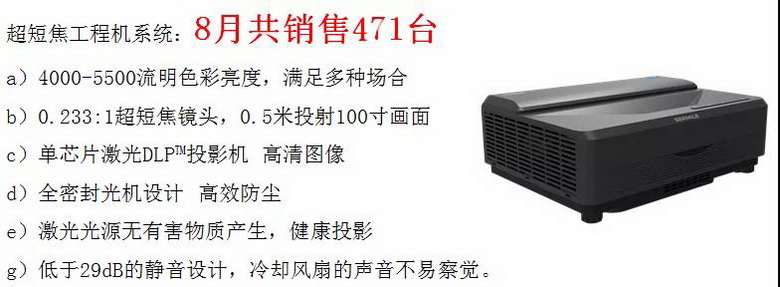 2019年8月,視美樂業(yè)務(wù)市場捷報頻傳,激光工程機單月銷量突破千臺大關(guān),同比實現(xiàn)大幅度上揚。根據(jù)激光工程投影市場的分析報告統(tǒng)計,2019年二季度銷量排名前三的品牌平均銷量在一千兩百臺左右(3個月總計銷量),而視美樂8月單月銷售就突破千臺,成績斐然。