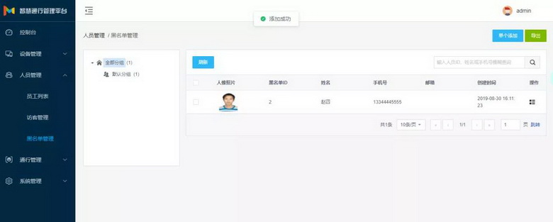 支持黑名單單個添加、編輯和導(dǎo)出操作;支持管理方預(yù)先在后臺上傳被列入黑名單的人員的照片,以及更豐富的個人信息,包括姓名、性別、年齡、手機號、身份證號碼、IC卡號、民族、籍貫、聯(lián)系地址、出生日期等。