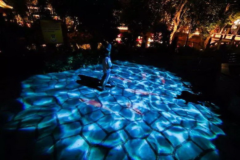 水紋與投影的互動(dòng)、各種造型燈具的點(diǎn)綴