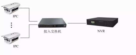 針對(duì)于1-8個(gè)點(diǎn)的小型工程,可以直接采用普通百兆交換機(jī)實(shí)現(xiàn)網(wǎng)絡(luò)環(huán)境搭建。假如采用200萬(wàn)像素IPC,碼流以4Mbps計(jì)算,8臺(tái)攝像機(jī)占用帶寬為8*4=32M,而百兆交換機(jī)實(shí)際使用率為50%-70%,即50-70M,完全可以滿足8臺(tái)IPC的傳輸要求。