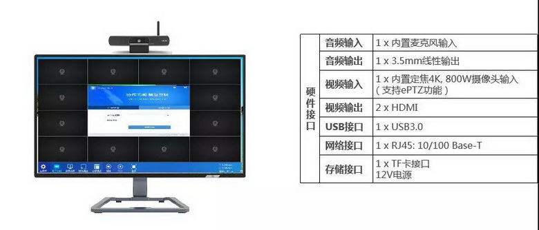 針對村級會場,建議使用專用的視頻會議終端作為村級會場的核心,終端一體化集成84°4K高清攝像機,十核超強CPU,原生安卓操作系統(tǒng),內(nèi)置麥克風,拾音距離可達6米,同時提供外置麥克風的接口,滿足不同會場環(huán)境的需求。