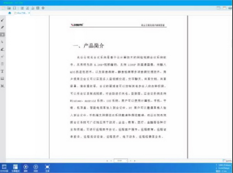 主界面左側是視頻顯示區(qū),中間默認是電子白板顯示區(qū),右側是人員列表、文字消息和用戶使用手冊本地視頻的顯示區(qū)域。下排按鈕為功能選擇區(qū),從左到右依次為系統(tǒng)設置、電子白板、桌面共享、媒體播放、全屏、錄制和回放;右排按鈕依次為申請發(fā)言、停止共享、數(shù)據(jù)操作、數(shù)據(jù)同步。
