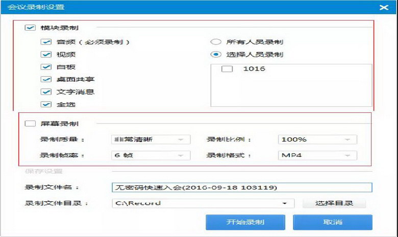 2.會議錄制,分為模塊錄制和屏幕錄制,模塊錄制可以在會議室中進行回放,屏幕錄制可以錄制成標準格式的視頻媒體文件。
