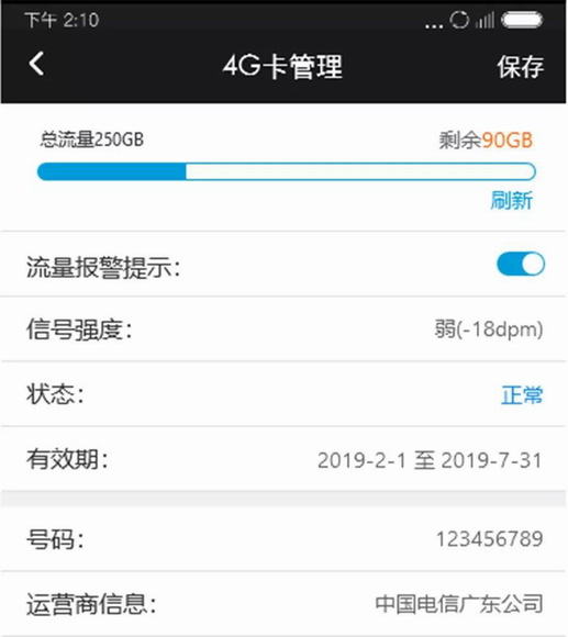 普通4G攝像機都沒有流量顯示。新一代4G攝像機不但可以顯示流量、信號強度、連接狀態(tài)等信息,還可以同時設置流量報警,提醒什么時候需要充值。
