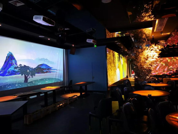 本項(xiàng)目總投影面積巨大,幾乎囊括了整個餐廳的全部主墻面,多通道融合系統(tǒng)配合先進(jìn)的圖形處理、畫面渲染技術(shù),呈現(xiàn)出來的畫面渾然一體,恢弘大氣。目之所及,皆是激光投影帶來的新奇體驗(yàn)。