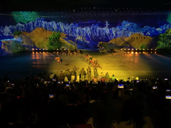 實(shí)景演出分為“岷江源頭、黃龍賜福、美麗家園、軍團(tuán)入侵、天降神兵、重建家園、和合松州”七個(gè)部分,將松潘文化、松州歷史人文故事和地域特色融于一體,構(gòu)思巧妙、模式新穎,極具觀賞性。光與影在這里描繪一幅幅風(fēng)光迤邐、景色獨(dú)特的多彩畫卷,映射一道道民族融合、文化燦爛的雅致風(fēng)情,見證一處處神賜物華、天人合一的伊甸樂園。