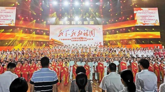 這場別具特色的文藝匯演,由師生共同演出歌舞、朗誦、武術(shù)、器樂演奏等多種形式的節(jié)目。節(jié)目精彩紛呈,主題鮮明,充分展示出豐碩教育成果,贏得了現(xiàn)場觀眾陣陣掌聲。晚會最后, 觀看演出的領(lǐng)導(dǎo)嘉賓現(xiàn)場觀眾等2000多人一起揮動手中的紅旗,共同高唱《我和我的祖國》,將文藝匯演推上高潮。