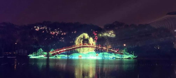 將光與影相交互的“鵲橋之戀”燈光劇秀。