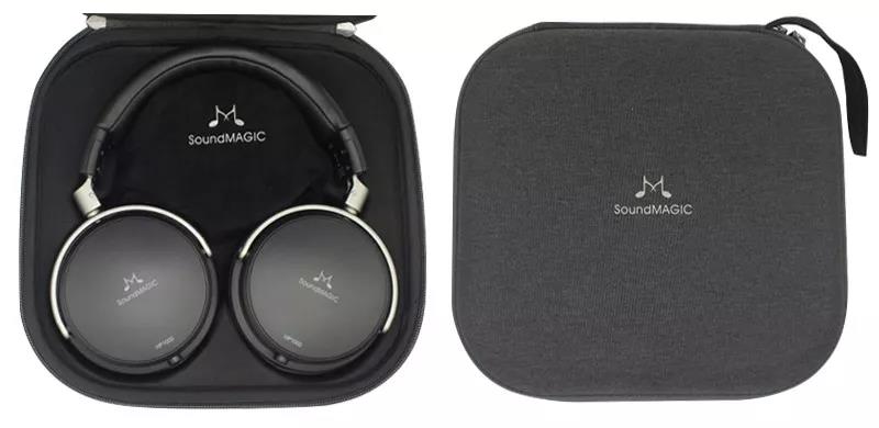 這個盒子是一種標(biāo)準(zhǔn)的紙板樣式,設(shè)計用來掛在一個零售貨架上。正面有制造和型號信息,背面有產(chǎn)品詳細(xì)說明。在盒子里,所有的東西都整齊地裝在一個硬邊布制成的拉鏈包里,上面印有SoundMagic的商標(biāo)和品牌名。耳機包里面是一個成型的托盤,上面有耳機本身的位置,還有一個黑色天鵝絨布袋,上面用灰色印著商標(biāo)/品牌名,里面裝有配件。配件袋內(nèi)包括耳機線,延長線,和3.5至6.3毫米轉(zhuǎn)換器。耳機包很結(jié)實,可以很好地保護里面的物品,配件袋也可以防止線纜劃傷耳罩。