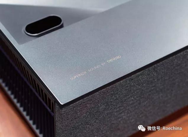 ↑具備4K超高清解析力的光學(xué)鏡頭,能夠在0.6m距離下投射100英寸的大畫(huà)面,具備電動(dòng)對(duì)焦的能力,以及電動(dòng)鏡頭滑蓋的功能