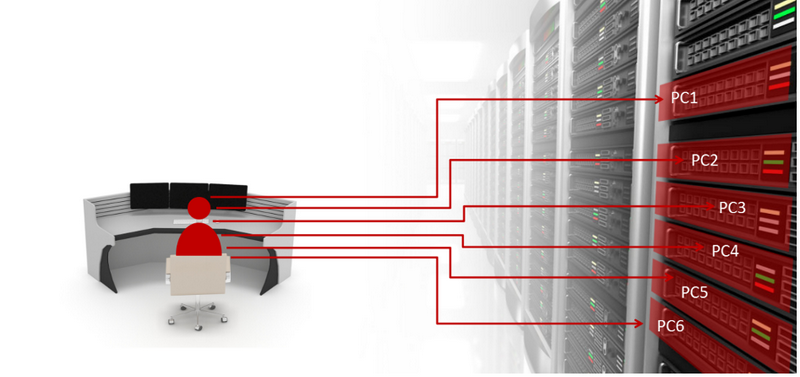 每個坐席上只需一套鼠標(biāo)鍵盤,即可管理業(yè)務(wù)系統(tǒng)電腦主機。可通過鍵盤快捷鍵操作,彈出系統(tǒng)權(quán)限內(nèi)主機列表,快速調(diào)取不同業(yè)務(wù)主機進行操作,節(jié)省大廳空間資源,靈活管控多臺主機,并支持多平臺、跨平臺與跨網(wǎng)段之間操作。