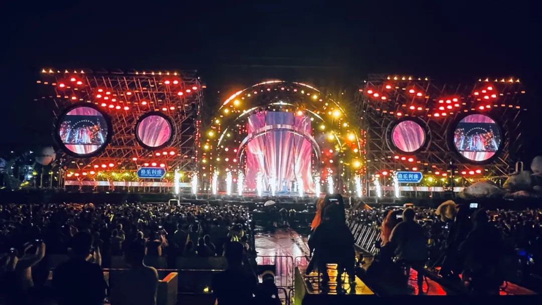 演出地點距離文昌航天發(fā)射場不遠,音樂盛典主舞臺的設(shè)計靈感也源于此,以“潮汐鎖定”這天文學名詞出發(fā),設(shè)計成如同一飛沖天的火箭般。又由于此次盛典在海邊開唱,所以“星辰”和“大!边@兩個主題元素自然少不了。在盛典舞臺上,歌手們演唱了多首歌曲共同致敬星辰大海和飛天夢想,鄧紫棋的《天空沒有極限》、周深的《光亮》、黃齡的《星河嘆》、黃霄云的《星辰大海》、鄭云龍的《摘星辰》……一首首精彩的歌曲帶著現(xiàn)場觀眾上天又入海,沉醉在這個海風習習的浪漫夜晚。
