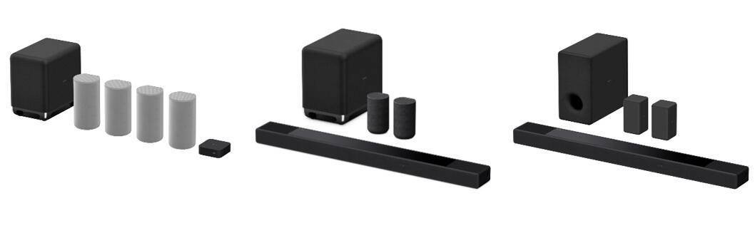 搭載360 SSM音頻黑科技的國行套裝陣容,從左至右:HT-A9+SW5震撼環(huán)繞套裝,HT-A7000+SW5+RS5震撼環(huán)繞套裝,HT-A7000+SW3+RS3S低音環(huán)繞套裝