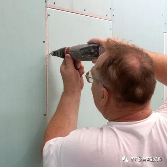 假設(shè)現(xiàn)在來到施工現(xiàn)場,石膏板的墻壁,NOVASONAR音箱展示安裝四步法,即可快速準(zhǔn)確地完成整個安裝過程: