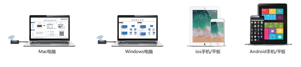 BG01桌面式無線投屏一體機支持多臺電腦,手機、平板移動設(shè)備接入投屏,多人會議分享時,最高支持16個不同種類設(shè)備同時接入,一鍵切換分享主講人。