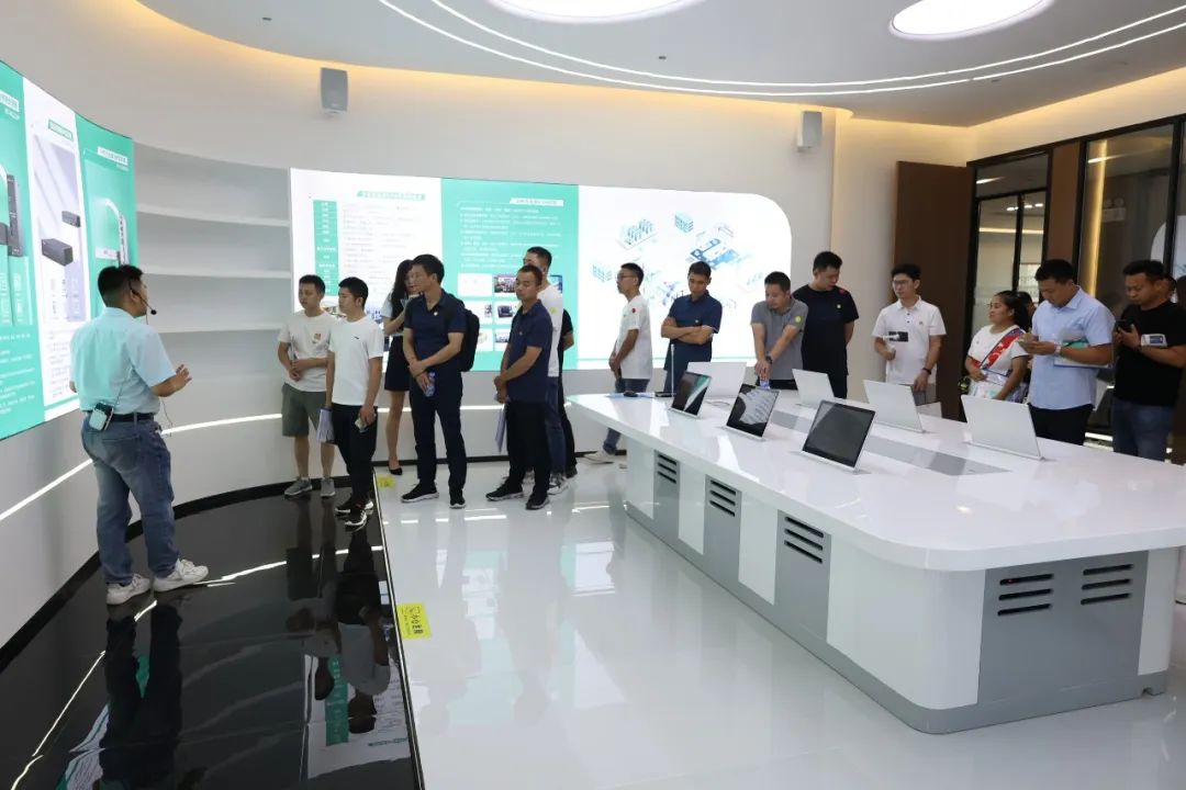 [視騰科技工作人員引導經(jīng)銷商參觀生產(chǎn)中心]