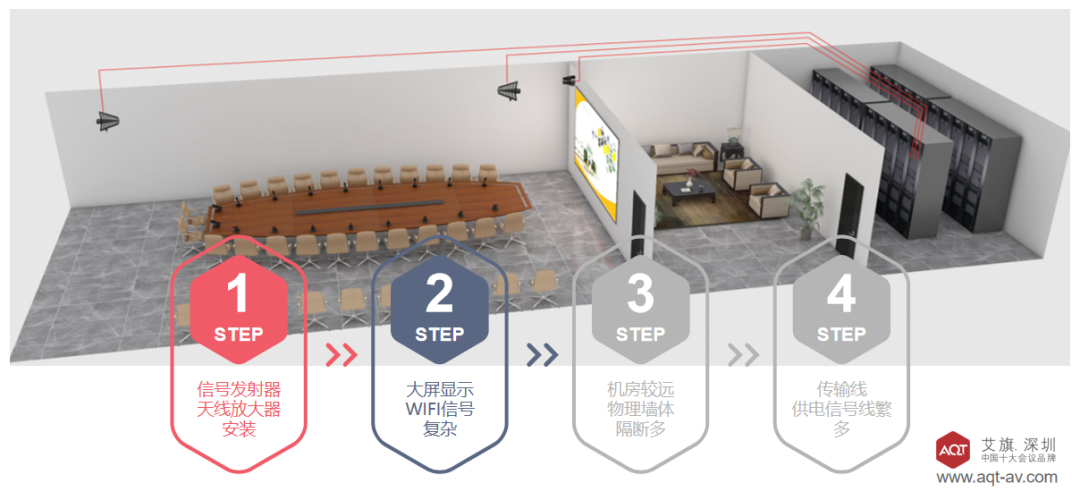 傳統(tǒng)無線會議需增加天線線放大器,除增加高昂成本,還破壞裝修美感,增加一定程度布線難度, 距離超過天線放大器的接收范圍無法正常使用,也無法解決相關(guān)問題。