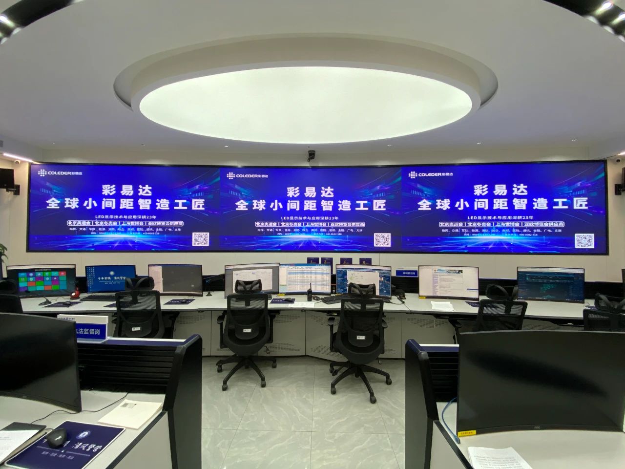 此項(xiàng)目LED顯示屏采用彩易達(dá)麒麟甲系列A1.2產(chǎn)品,整屏可分成三塊高清顯示區(qū)域,實(shí)現(xiàn)多終端同步展示,超長超高清大屏幕分畫面實(shí)現(xiàn)集中顯示,信息互通互聯(lián),可供工作和決策人員做出快速判斷和應(yīng)對(duì)。